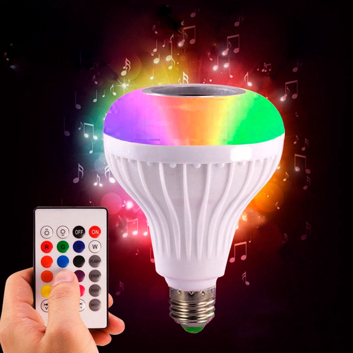 Possui bluetooth para tocar música. Controle a cor e a música pelo controle remoto.