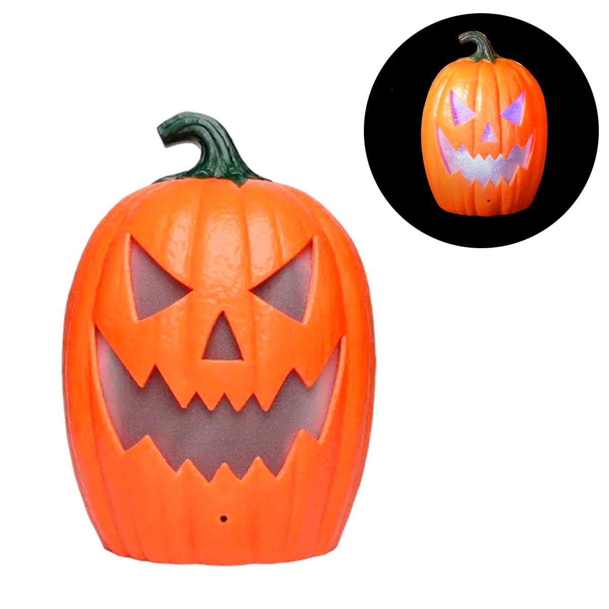 Linda abóbora com luz e som para decorar sua festa de Halloween! Quando ligada emite sons aterrorizantes e acende a luz!