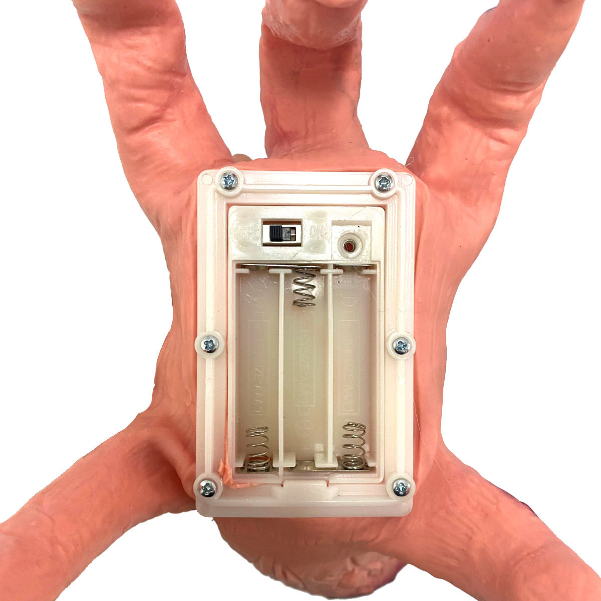 Possui sensor de som, quando ativado, a mãozinha emite som e se movimenta!